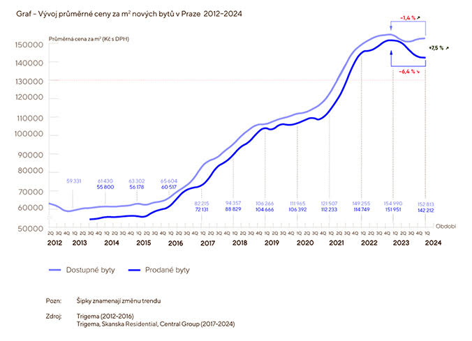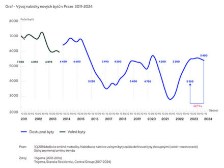 „V prvním čtvrtletí tohoto roku jsme svědky výrazného skoku v prodeji nových bytů v Praze, který představuje meziroční nárůst o 146 %. Tento fenomén je důsledkem nejen nízké srovnávací základny, ale také pozitivních změn na hypotečním trhu a snížení sazeb DPH. Zájem o nové byty roste již páté čtvrtletí v řadě a díky uvolnění podmínek pro získání hypoték a poklesem úrokových sazeb se trh vrací na úroveň před pandemií. Tento trend naznačuje obnovenou důvěru kupujících a pozitivní výhled pro další vývoj realitního trhu,“ shrnuje Karel Branda, místopředseda představenstva investiční skupiny Trigema.