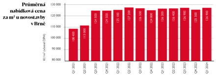 Ceny po určitou dobu tlačila dolů nižší DPH na nové byty, která se počátkem letošního roku snížila z původních 15 na 12 %. Většina developerů však tuto změnu promítla do svých ceníků již na konci loňského roku, a tak přechod mezi posledním čtvrtletím roku 2023 a letošním prvním kvartálem nebyl tak výrazný. „Trend stagnujících nabídkových cen se už zřejmě obrací, protože na konci března atakovaly ceny 128 tisíc za metr čtvereční, což je nárůst asi o dvě až tři procenta,“ upřesňuje Lamka.