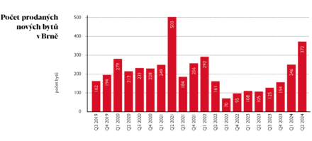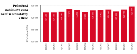 Průměrná nabídková cena brněnských novostaveb přesáhla ve druhém čtvrtletí roku 2024 úroveň 129 400 Kč za metr čtvereční. Pokořila tím dosavadní rekord z roku 2022. Prudce vzrostla i poptávka. Jak ukazují data společnosti Trikaya, oproti prvním třem měsícům letošního roku se ve druhém kvartálu prodalo o polovinu více nových bytů. V meziročním srovnání se jedná dokonce o rekordní nárůst o 254 %.