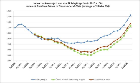 Nabídkové ceny bytů vytrvale rostou již od roku 2012. „První čtvrtletí 2017 přineslo další zrychlení růstu nabídkových cen pražských bytů, růst nabídkových cen bytů mimo Prahu se naopak výrazně ochladil,“ uvádí Zpráva o inflaci II/2017 ČNB. Nabídkové ceny mimopražských bytů se úrovně z roku 2008 zatím úspěšně vyhýbají.