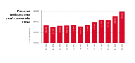 Za první pololetí letošního roku se v Brně prodalo 777 novostaveb, o 26 procent více než ve stejném období v roce 2024. Průměrná cena nových bytů v Brně poprvé dosáhla hranice 140 tisíc korun za metr čtvereční a stanovila nový cenový rekord. Vyplývá to z aktuální analýzy společnosti Trikaya.