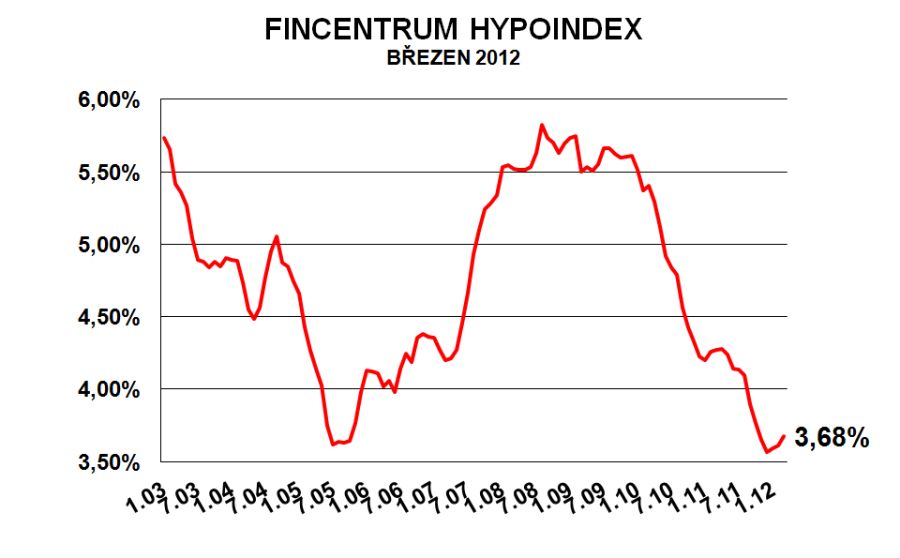 Metodika FINCENTRUM HYPOINDEXu: FINCENTRUM HYPOINDEX hodnotí vývoj cen hypoték v čase. Je to vážená průměrná úroková sazba, za kterou jsou poskytovány v daném kalendářním měsíci nové hypoteční úvěry pro fyzické osoby. Vahami jsou objemy poskytnutých úvěrů. Vstupní data pro výpočty poskytují tyto banky: Česká spořitelna, ČSOB, GE Money Bank, Hypoteční banka, Komerční banka, Raiffeisenbank, UniCredit Bank, Volksbank CZ a Wüstenrot hypoteční banka.