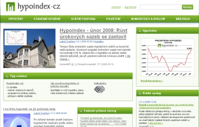 Hypoindex.cz je zpravodajským serverem ze světa hypotečních úvěrů, stavebního spoření a realitního trhu.