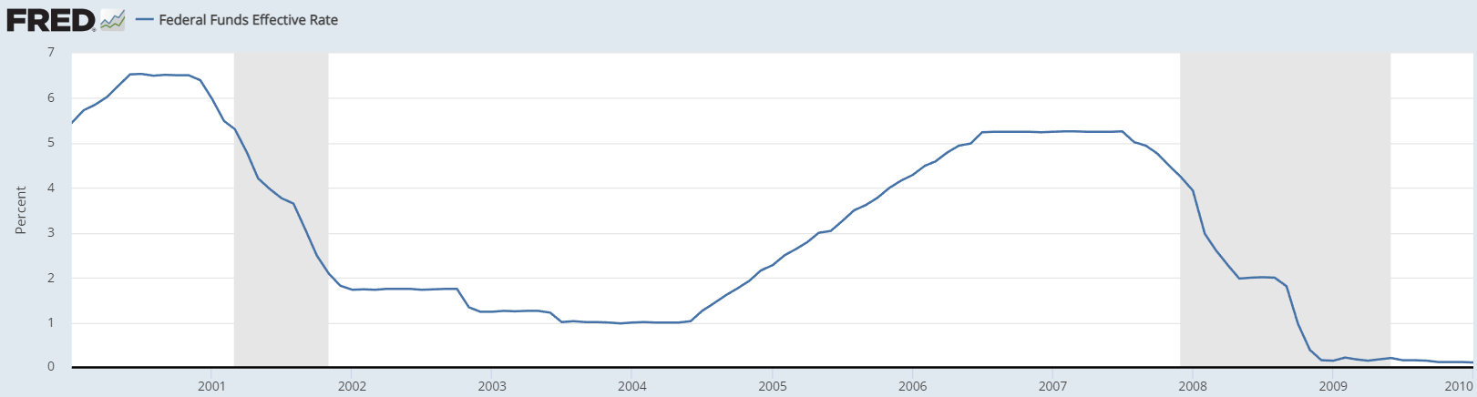 Greenspanova role spočívala právě v politice levných peněz. V roce 2001 snižoval Fed úrokové sazby, aby pomohl ekonomice zotavit se po teroristických útocích z 11. září 2001. Toto snížení úrokových sazeb a politika ochoty poskytovat financování vedly k tomu, že byly hypoteční úvěry levné a dostupné.