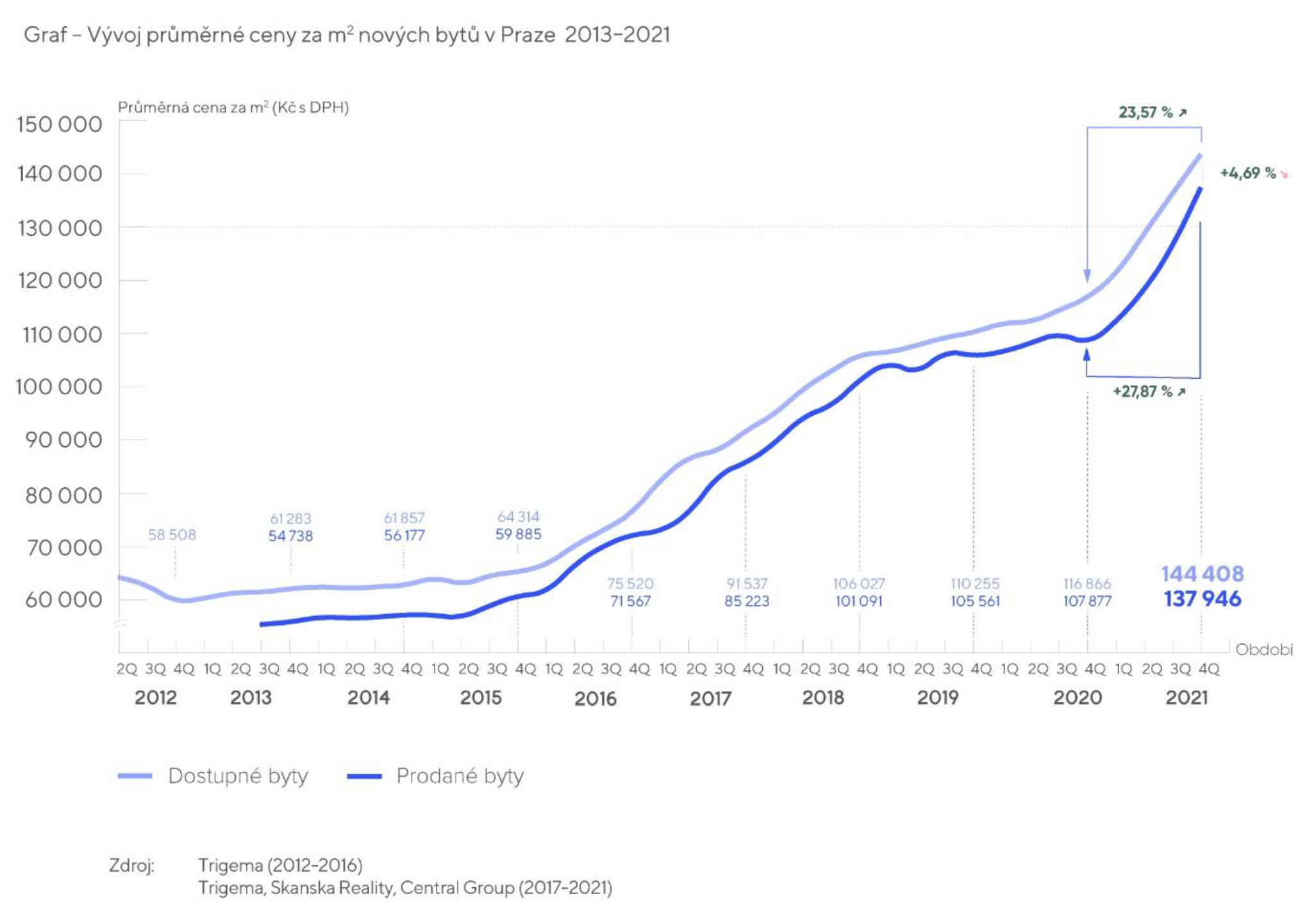 Kromě prodejních cen vzrostly i nabídkové ceny bytů. Podle analýzy Central Group, Trigema a Skanska dosahovala nabídková cena na konci prosince částky 144 408 Kč za m2, tedy o 5 % více než v předchozím čtvrtletí a o zhruba 24 % více než před rokem.