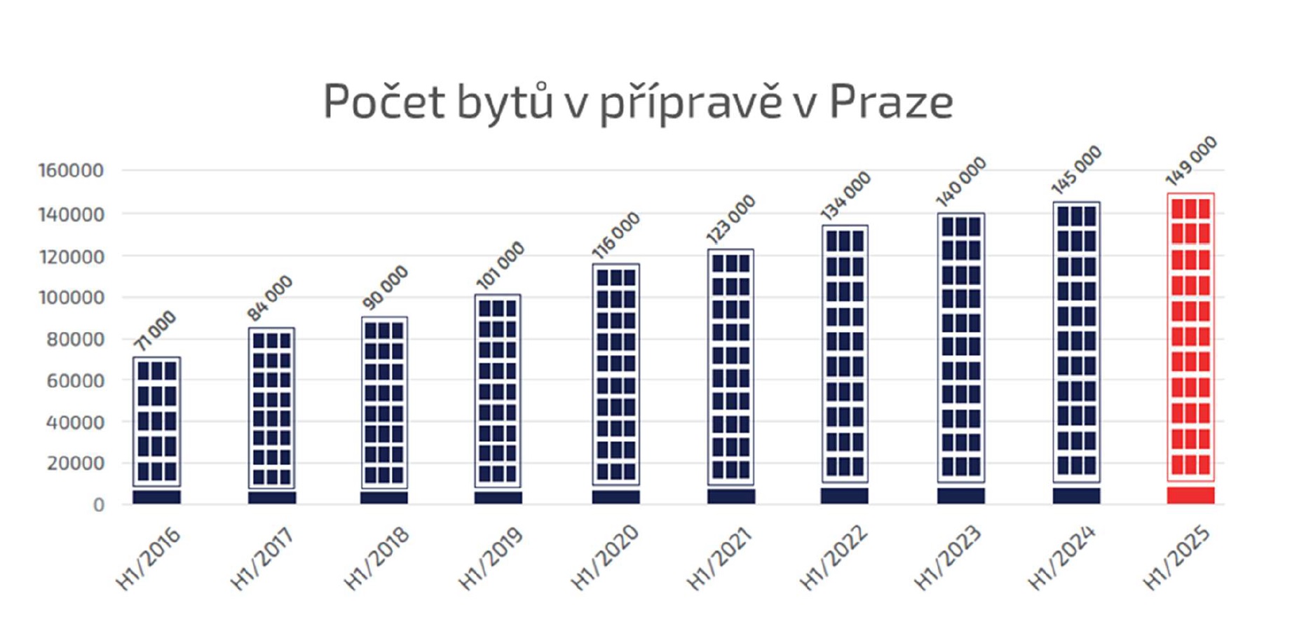 Podle aktuálních dat Central Group je přitom v Praze v různých fázích přípravy rekordních 150 tisíc nových bytů. Jenže kvůli zdlouhavému a komplikovanému systému povolování se je stále nedaří dostat na trh v dostatečném počtu. Tento stav navíc trvá dlouhodobě. Průměrně je v Praze každý rok povoleno pouze kolem 6 tisíc nových bytů, reálnou potřebou metropole je ale podle analýz IPR Praha každoročně povolit a postavit minimálně 10.000 nových bytů. Jen za posledních 20 let tak narostl bytový deficit v hlavním městě o téměř 100 tisíc bytů.