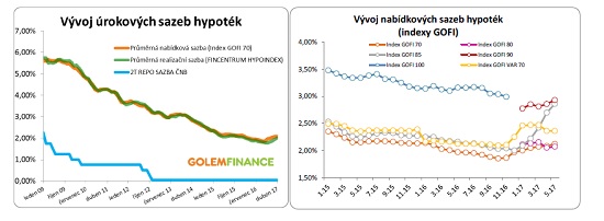 Zatímco úrokové sazby hypoték do 80 % LTV prakticky stojí na místě – indexy GOFI 70 a 80 oproti předchozímu měsíci vzrostly jen o několik málo setin procentního bodu, u hypoték nad 80 % LTV letí sazby nahoru. Index GOFI 85 meziměsíčně vzrostl o 16 setin na 2,86 % a index GOFI 90 vystoupal z 2,86 % na 2,93 %.