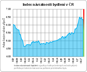 Druhou možností, jak měřit dosažitelnost bydlení je index návratnosti bydlení, který nezohledňuje vliv úrokových sazeb na dosažitelnost bydlení a prostým podílem poměřuje průměrné ceny bytů a čisté roční příjmy českých domácností. Podle této statistiky nyní české domácnosti na pořízení bytu o průměrné ceně 2,57 mil. Kč musí vynaložit 6,36násobek svých čistých ročních příjmů.