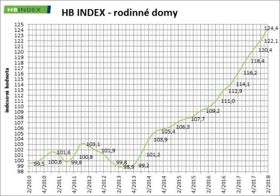 • Ceny rodinných domů během čvtrtého čtvrtletí vystoupaly o 2,1 pcb až na hodnotu HB INDEXu 129,1. Meziročně ceny stouply o 7,2 pcb.