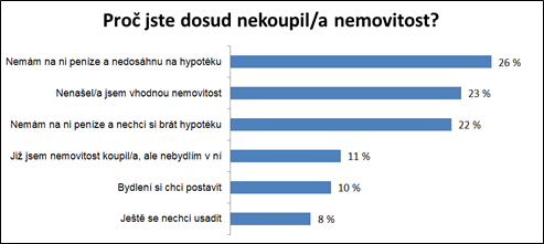 Ti, kdo nákup nemovitosti neplánují, ji v 72 % případů již mají, většina ostatních se nechce zadlužovat. Jedná se především o mladé lidi a občany s nižším vzděláním, u kterých je navíc vysoká pravděpodobnost, že na hypotéku nedosáhnou.