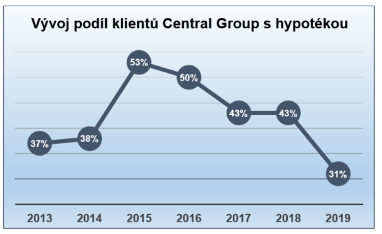 Graf: Podíl klientů financujících byt od Central Group hypotékou