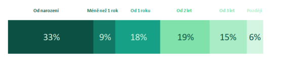 Napříč generacemi se osm z deseti dotázaných shodlo, že děti mají opustit lůžko rodičů nejpozději ve dvou letech. Nejvíce respondentů (33 %) odpovědělo, že by do vlastní postýlky ukládali už novorozence.
