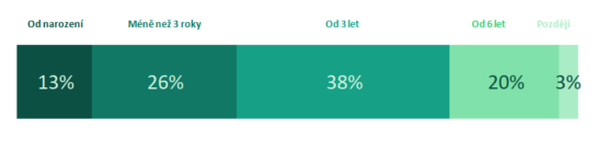 Naprostá shoda generací pak panuje v tom, kdy má mít dítě svůj vlastní pokoj. Poměrně málo rodičů (13 %) ho má připravený už od narození miminka. Většina (64 %) ho pak vybuduje do tří let věku. Můžeme to vysvětlit tím, že při narození dítěte mnoho rodičů ještě bydlí v nájmu, u rodičů nebo v jiném provizoriu. A na dětský pokoj dojde, až když si rodina pořídí vlastní bydlení.