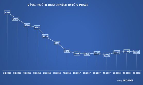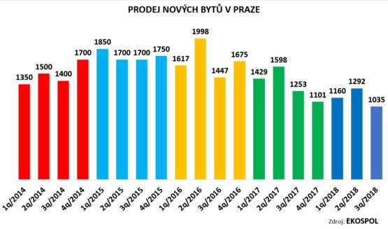 Pražský rezidenční trh bojující se zamrzlým povolovacím procesem stále hledá své dno. Developeři ve třetím čtvrtletí prodali jen 1035 nových bytů, což je nejméně od třetího čtvrtletí 2012. V meziročním srovnání došlo k poklesu o 17,4 procenta. Od začátku roku získalo v hlavním městě nového majitele jen 3487 nových bytů. To je takřka o osm stovek prodaných bytů méně než v loňském roce. Vyplývá to z podrobných analýz společnosti EKOSPOL, která monitoruje trh s novými byty v Praze už více než 11 let.