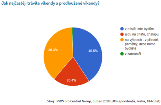 Z průzkumu vyplynulo, že obyvatelé Prahy čím dál častěji tráví víkendy v místě, kde bydlí (40,8 %). Na výlety či akce mimo své bydliště vyráží 38,3 procenta dotázaných, na chaty či chalupy poměrně překvapivě jen 20,4 procenta z nich. Úměrně tomuto trendu pak roste důležitost venkovních prostor, které jednotlivé byty a projekty v metropoli nabízejí.