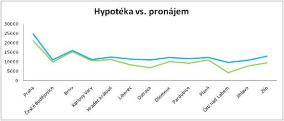 Rozdíly ve výši nájemného se samozřejmě liší podle velikosti měst. Zatímco průměrná výše pronájmu v ČR činí pro byt o rozloze 72 m2 přes 11 700 korun, v Praze za pronájem bytu o stejné rozloze zaplatíme dvakrát více (24 700 Kč). Na hypotéce tak lze ušetřit v hlavním městě ročně přes 41 000 korun[3]. Druhé nejdražší bydlení lez koupit v Brně. I zde se vyplatí pořídit si byt na hypotéku než platit pronájem. Přesto je zde úspora nejnižší v celé ČR. Ročně lze v Brně s hypotékou uspořit zhruba 6 700 korun3. Oproti tomu největší úsporu představuje koupě nemovitosti na hypotéku v Ústí nad Labem. Zde se s hypotékou dá oproti placení pronájmu ušetřit až 67 000 korun ročně3.