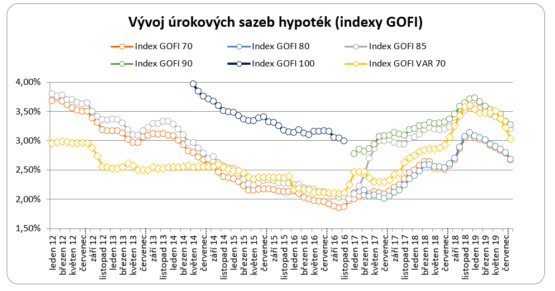 Hypoteční sazby nezadržitelně padají. V srpnu své sazby snížila Moneta, Česká spořitelna, Wuestenrot, mBank a v závěru měsíce i Hypoteční banka a ČSOB. Průměrná nabídková sazba během srpna klesla z 2,78 % na 2,67 % (měřeno indexem GOFI 70)