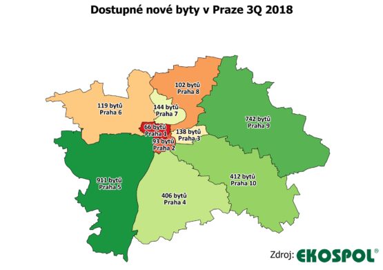 Data dostupných bytů doplňují prodejní statistiky, které EKOSPOL zveřejnil v minulých týdnech. Podle nich se ve třetím čtvrtletí letošního roku v Praze prodalo nejméně nových bytů za posledních šest let, celkem jen 1035 nových bytů za 6,43 miliardy korun. Z hlediska počtu jde o meziroční pokles o 17,4 procenta. Průměrná cena nových bytů v nabídkách developerů od začátku roku vzrostla už o 11 procent na 94 894 korun za metr čtvereční. Naopak rozloha průměrného nabízeného bytu se opět o něco zmenšila a dosahuje 64,43 metru čtverečního. Za průměrný byt tak zájemce musí zaplatit 6,1 milionu korun.