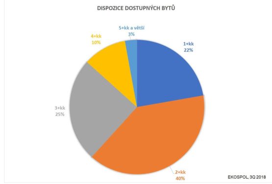 Tomuto zájmu vychází vstříc také developerské společnosti, v jejichž cenících dominují právě dvoupokojové byty. Zájemci si mohou vybírat z celkem 1254 nových bytů s dispozicí 2+kk, což představuje 40 procent celkové nabídky dostupných bytů. Oproti předchozímu čtvrtletí nepatrně vzrostl podíl jednopokojových garsonek, který už dosahuje 22 procent (mezičtvrtletní nárůst o dva procentní body). O něco větší výběr je mezi třípokojovými byty, které se kvůli jejich vyšší celkové ceně prodávají déle. I proto jich je v cenících developerů více než žádanějších jednopokojových garsonek.