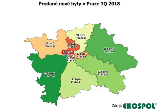 Nejmenší zájem kupujících byl už tradičně o nejužší centrum města, nejméně nových bytů se tak prodalo v Praze 1. Příliš se neprodávaly nové byty ani v Praze 2, 3 a 7.