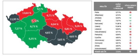 K 30. září 2018 bylo v Registru fyzických osob SOLUS zapsáno 7,15 % dospělých občanů ČR s nesplaceným závazkem po splatnosti. Ve stejném období loňského roku to bylo 7,36 % občanů. V absolutních číslech evidoval SOLUS v Registru fyzických osob ke konci září 621 tisíc dospělých občanů ČR s celkovým dluhem po splatnosti přesahujícím 49,8 mld. Kč.