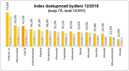 Výše uvedená hodnota 47,5 % je celorepublikovým průměrem. V Praze hodnota indexu již atakuje 80% hranici. Ve většině zbývajících regionů, kde ceny nejsou zdaleka tak vysoké jako v Praze, se index dostupnosti bydlení drží pod 40 %. V Ústeckém kraji jeho aktuální hodnota dokonce činí jen 16 %.