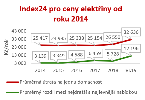 Zatímco průměrná útrata za plyn bude letos oproti roku 2018 zhruba o polovinu nižší, výdaje za elektřinu naopak vzrostly téměř o čtvrtinu. Růst cen bude navíc pokračovat, některé společnosti navíc plánují zdražit již na podzim. Například největší energetická společnost ČEZ plánuje od 1. listopadu zvednout ceny dvoutarifních sazeb až k hranici 2 000 korun za MWh, což představuje zdražení o 11 %.