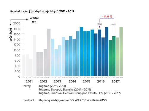 Jestliže před rokem se ve stejném období prodalo 1750 nových bytů, aktuálně to bylo hned o 250 méně, ukázala studie. O tento počet se v meziročním srovnání snížily prodeje již také během prvního čtvrtletí letošního roku, kdy se jednalo o 3 450 jednotek. „Zatímco za minulý rok se v hlavním městě, který je pro celý domácí trh určující, prodalo 6650 bytů, letos to bude pravděpodobně o mnoho méně. Dohromady prodeje spadnou pod hranici 6000 jednotek. Jen za první pololetí se jejich objem snížil o 500. Lidé mají o nové bydlení zájem, často si však nemají z čeho vybírat,“ vysvětluje Marcel Soural, předseda představenstva společnosti Trigema.