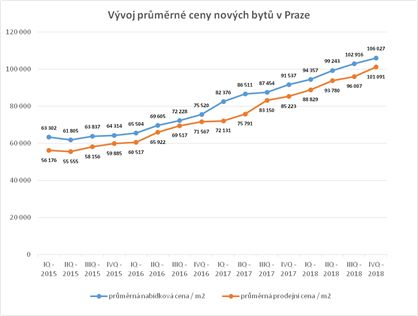 Prognózy společností Trigema, Skanska Reality a Central Group, které před rokem předpovídaly ceny bytů atakující hranici 100 tisíc Kč za m2, se naplnily. V současné době zaplatí zájemce o nové bydlení v Praze v průměru 101 tisíc Kč za m2. V meziročním porovnání je to o 19 procent více. Nabídkové ceny, tedy ty, za které nyní mohou zájemci o nové bydlení nakupovat, jsou pak ještě o 5 tisíc vyšší. Nejdražší byty jsou tradičně v Praze 1 a 2, kde zájemce za m2 zaplatí 198 tisíc Kč, respektive 164 tisíc Kč. Nejdostupnější byty jsou v Praze 4 a 10, kde se prodejní cena pohybuje mírně pod 89 tisíc za m2.